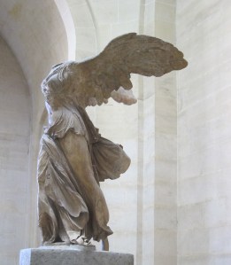 The piece I was anxious to see at the Louvre was the Winged Victory (or Nike) of Samothrace. She’s a beautiful 2nd century BC, several ton marble sculpture of the Greek Goddess Nike, minus a few parts. Thought to be once perched at the prow of a ship, she’s missing her head and arms. None the less, she’s strong, powerful and in my opinion gorgeous. Her large triumphant wings outstretched behind her, one doesn’t need to see her face to know she’s victorious. What I love most about this piece, is I can actually see her moving through space, much like a dancer.